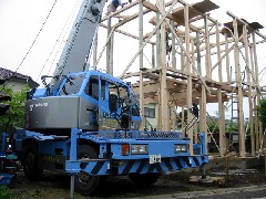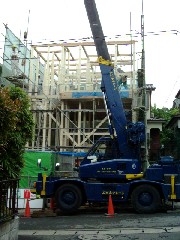 本日は木造の建て方です。2階建てなのですが基礎が高く3階建て並に高さがありました。電線がちょうどいいところにあり若干苦しいところもありましたが予定通り作業終了、皆さんお疲れ様でした。有難うございました。