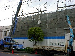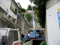 今日は、材料の搬入作業です。何回か作業を行った現場です。ここのお宅は人が一人通れる階段の上にお宅があり、現場まで物を運んだり出したりするのが大仕事です。我々も急坂にセットをして、電線をかわしながら品物を現場まで送ります。なんだかんだ言っても無事に竣工が迎えられそうです。職人さん、監督さん、お疲れ様でした。