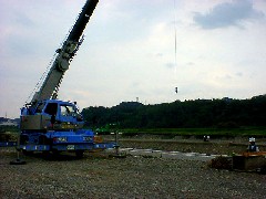 本日は河川の護岸工事で型枠材の振り分け作業です。ノリ面に設置するので地組みしてから設置するのですが、時折吹く風に振れ止め合わせしながら慎重に送り込みました。皆さんお疲れ様でした。