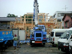 本日は木造建て方です。裏が広い駐車場になっていてとても作業条件のいい現場でした。あいにくのお天気の中作業は進みましたが大工さんはかっぱを着たり脱いだり大変です。無事棟上完了、皆さんお疲れ様でした。有難うございました。