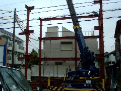 本日は鉄骨の建て方です。電線がありましたが、材料もほとんど事前に運んであり手際よく作業は進みました。皆さん雨の中お疲れ様でした。有難うございました。