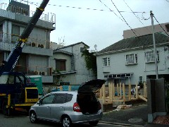 本日はRC現場の材料揚げです。電柱の支線越しの為作業半径を出すのに2段ジブ作業になりました。交差点脇での作業で歩道をまたぐ為、ガードマンさんは大忙しです。周囲にも注意しながら慎重に作業を致しました。皆さんお疲れ様でした。
