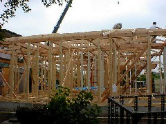 本日は木造の建て方です。奥行きが22Mもあるとても立派なお宅で、2段ジブ作業になりました。心配された雨も一時で止み予定通り作業は進みました。皆さんお疲れ様でした。明日も宜しくお願い致します。