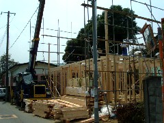 本日は木造の建て方です。前面道路が4Mで近隣の生活道路になっていて妨げることが出来ません。アウトリガーの張り出しを押さえてなるべく敷地内にクレーンセット、作業いたしました。とても暑い一日でしたが、皆さんお疲れ様でした。有難うございました。