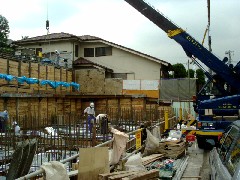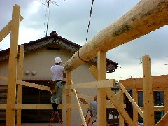 本日は木造建て方で松梁と登り梁の取り付け作業です。設計が凝っている建物で、長さ8Mの松梁が目を引く大変立派なお宅です。墨打ち、加工後ぴったりと収まる梁はすばらしいの一言です。皆さんお疲れ様でした。御施主様上棟おめでとうございます。有難うございました。