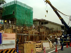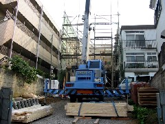 今日は木造建て方作業です。3階建てで、セットする場所が傾斜地なのでジブを出すのと水平を出すのが大変でした。今日は3階の床までで作業を終えました。暑い一日でした、大工さん、監督さん、お疲れ様でした。