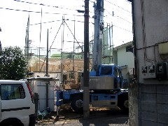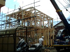 今日は木造建て方作業です。狭いスペースでしたが電線の内側にセットできたので作業はやりやすかったです。蒸し暑い一日でしたが無事に作業を終了しました。大工さん、監督さん、お疲れ様でした。御施主様上棟おめでとうございます。