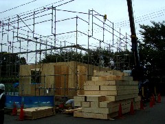 本日はツーバイパネルの建て方です。進入路が若干狭いところでしたが、場所は広くやりやすいところでした。あいにくのお天気の中、皆さんお疲れ様でした。