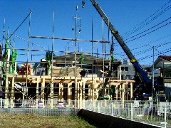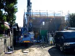 今日は木造建て方作業です。上部電線がありクレーンはなるべく現場に寄せ、線内からの作業になりました。起伏角は制限されましたが無事に棟上することが出来ました。大工さん、監督さん、お疲れ様でした。御施主様上棟おめでとうございます。