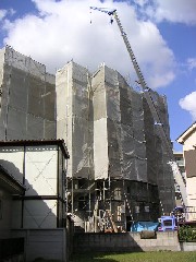 本日は木造建て方作業です。本設の電線があり無理やりクレーンを中に入れ起伏角を取り作業致しました。荷取りに若干難がありましたが、作業は順調に進みました。皆さんの疲れ様でした。