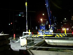 夜は推進の現場で残土の搬出作業です。だいぶ深く掘り下げているようでブーム長も必要最低限の長さにとどめ、ワイヤードラムの残り巻き数に注意しながら作業致しました。皆さん朝までお疲れ様でした。