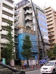 本日はRC現場で鉄筋材の荷揚げです。全面に電線があるのと、間口が8Mしかないのでラフィングを使い荷取り荷送りいたします。特に長尺物は、お隣のビルに当てないよう注意が必要です。吊荷も歩道をまたぐ為ガードマンさんの合図も見逃すことは出来ません。鉄筋屋さんの無線合図と手際のよい解釈、ガードマンさんとの連携で安全に作業を行うことが出来ました。皆さんお疲れ様でした。有難うございました。