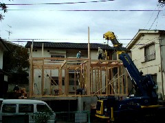 本日は木造の建て方作業です。なるべく寄せて線の内側にクレーンセット伸縮を使いながら作業致しました。皆さんお疲れ様でした。上棟おめでとうございます。
