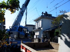 今日は装置の搬出作業です。2階建ての屋根から太陽熱温水器の撤去しトラックに積み込みました。近隣の方々がいい人ばかりで、道路を目一杯使えたので電線越しの作業が楽に出来ました。職人さん、お疲れ様でした。