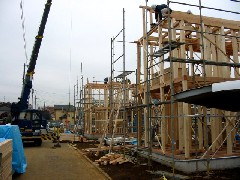 今日は木造建て方作業です。全15棟現場で今日が2.3棟目を建てました。現場は電線もなくやりやすい現場です。日射しもなく寒い一日でしたが無事に2棟とも棟が上がりました。鳶さん、大工さん、お疲れ様でした。