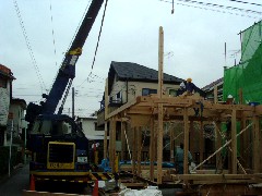 今日はプレハブ住宅の建て方作業です。先日1階部分を建てた現場で、今日は2階部分の半分を建てました。寒い一日でしたが今日の分は無事に終了しました。職人さん、お疲れ様でした。