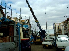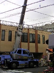 本日は室外機と冷凍機の荷揚げ搬入作業です。商店街で人通りも多く注意しながら作業致しました。皆さんお疲れ様でした。