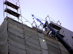 本日はRC現場で8階壁鉄筋材と外部仮設材の荷揚げです。全面に電線があるのと、間口が8Mしかないのでラフィングを使い荷取り荷送りいたします。特に長尺物は、お隣のビルに当てないよう注意が必要です。前面足場も揚重部分は空けて頂き9階までは頑張ります。吊荷も歩道をまたぐ為ガードマンさんの合図も見逃すことは出来ません。鉄筋屋さんの無線合図と手際のよい解釈、ガードマンさんとの連携で安全に作業を行うことが出来ました。皆さんお疲れ様でした。有難うございました。