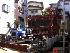 夜勤 夜間作業の現場です。120tで15階建て屋上からタワークレーンを降ろすための養生作業です。建物の裏側に敷いてある鉄板を出してきて歩道に敷きタワーの解体後復旧する作業です。無事にタワーも解体でき時間内に復旧できました。120tのオペさん、監督さん、お疲れ様でした。