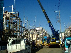 本日は鉄骨建て方です。柱の重量があるのでクレーンを基礎の中に入れ奥から決めていきます。この日の作業は無事終了、皆さんお疲れ様でした。有難うございました。明日も宜しくお願い致します。
