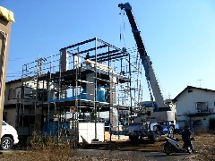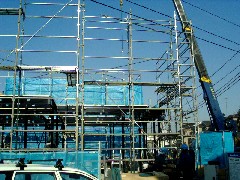 本日は軽量鉄骨系住宅の建て方です。先行足場があり奥の一部に苦しいところがありましたが何とか収めることが出来ました。この日は寒い1日でしたが、皆さんお疲れ様でした。