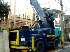 本日は木造住宅の建て方です。前面道路の通行確保と上部電線の都合でなるべくクレーンを入れ込み作業致しました。お施主様上棟おめでとうございます。皆さんお疲れ様でした。