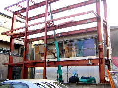 本日は引き続き3階建て重量鉄骨の建て方です。現場までの進入路が狭く軽トラに積替え、小運搬してカニクレーンで作業致しました。時より小雨が降る寒い1日でしたが建て方は無事完了、皆さんお疲れ様でした。また宜しくお願い致します。
