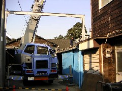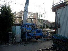 今日は木造建て方作業です。狭い路地に面している現場ですが、駐車場のスペースに上手電線をかわしセット出来たので作業はやりやすかったです。大変に立派な大きなお宅です、ジブを出して作業を行いました。ハッキリしない空模様でしたが、雨にも降られずに無事に棟が上がりました。大工さん、監督さん、1日お疲れ様でした。御施主様上棟おめでとうございます。