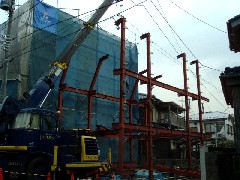 本日は鉄骨の建て方です。電線に囲まれていて荷の取り込みに神経を使いましたが予定通り棟上完了、鳶さんお疲れ様でした。また宜しくお願い致します。