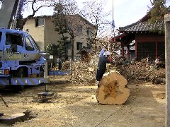 引き続き樹木の剪定伐採作業です。この日は立派な銀杏で幹は3.5トンありました。なるべく安全マージンを大きく取るよう豆にセット換えしながら慎重に作業致しました。
