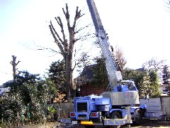 引き続き樹木の剪定伐採作業です。この日は立派なケヤキの剪定で山師さんと息を合わせての作業です。なるべくふところを大きく取るよう2段ジブで慎重に作業致しました。