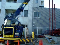 本日は鉄骨建て方です。クレーンの設置スペースが限られていてフロントアウトリガーはほとんど出すことが出来ません。吊り荷重量に気をつけながら慎重に送り込みました。皆さんお疲れ様でした。明日も宜しくお願い致します。