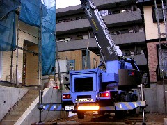 本日はツーバイパネルの建て方作業です。設備の配管に注意しながら進入クレーンセット、上部に電線があり荷取り荷送りともに注意しながら作業致しました。皆さんお疲れ様でした。また宜しくお願い致します。