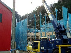 本日は木造の建て方です。全面先行足場でしたが奥行きが短かったので奥まで行き届くことが出ました。皆さんお疲れ様でした。