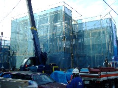 本日は鉄骨階段の取り付け作業です。木造の中に落とし込むので巻き下げは注意が必要です無線を使い慎重に作業致しました。皆さんお疲れ様でした。また宜しくお願い致します。