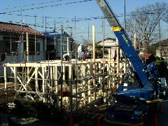 本日は木造建て方です。進入ルートが若干狭く後方を車輌が通過いたしますので注意しながら作業致しました。皆さんお疲れ様でした。