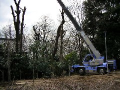 引き続き建物を囲む樹木の剪定作業です。鉄板移設養生や地ならしにミニユンボが大活躍、本当に助かりました有難うございます。この日は風も納まり作業は順調に進みました。皆さんお疲れ様でした。明日も宜しくお願い致します。