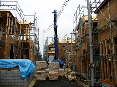 今日は木造建て方作業です。先週末に2棟建てた現場で最後の2棟でした。道路の真ん中に電線がありその左右の2棟が今回の2棟です。ブームを差し替えるのが大変でしたが、無事に棟が上がりこれで全12棟無事に上棟を終えました。大工さん、監督さん、お疲れ様でした。 (y) |