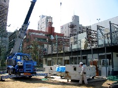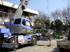 本日は保育園の外階段取り付け作業です。ステンレス製でとても凝ったデザインのすばらしいものでした。園庭を借り切っての作業だったので子供たちには不憫な思いをさせてしまったようですがラフターの仕事振りはなかなか好評だったようです。ご協力有難うございました。鉄骨屋さんお疲れ様でした。