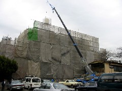 今日はマンションリニューアルの現場です。屋上より給水塔の解体搬出作業がメインの仕事です。お隣の駐車場をお借りし手の作業です、2段ジブを出し無事に全てを解体搬出出来ました。鉄骨屋さん、お疲れ様でした。
