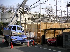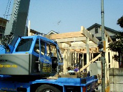 今日は木造建て方作業の現場です。足場後施工でクレーンには都合の良い条件でした。今日も無事に作業終了です。鳶さん、大工さん、1日お疲れ様でした。