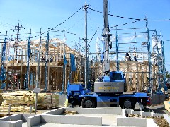 今日は木造建て方作業の現場です。全16棟の現場で5,6,7,8棟目を建てました。2棟は棟まで上げて残り2棟は1階部分の建て方です。大変風の強い1日でした、ここの現場の最初の2棟の上棟の時も風が強かったです、山の稜線に近いので仕方が無いのかもしれません。慎重に作業をおこない無事に2棟の棟が上がりました、大工さん、監督さん、お疲れ様でした。