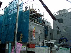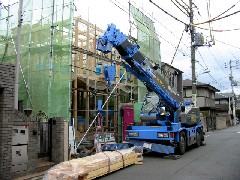 今日は木造建て方作業の現場です。2日目の作業で、屋根材他の材料の搬入が主な作業です、電線があり慎重に作業を行い雨が降り出す前に搬入作業は終了しました。。午前中は暖かかったのですが天気が怪しくなるにつれ寒くなってきました、大工さん、監督さん、お疲れ様でした。