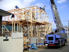 本日は木造建て方です。開発売り建て現場で残りわずかのところでした。周囲は既にお住まいになっているので人や車の通行に注意しながら作業致しました。大工さんの疲れ様でした。お施主様上棟おめでとうございます。