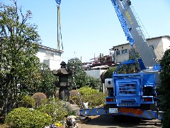 今日は石灯籠の据付作業の現場です。大きなお宅の中での作業です、重量物の揚重作業なのでお庭を壊さないように足元はしっかり養生し、安全に作業を行いました。大きな石灯籠で寛延四年と刻んであり大変古い物らしいです。造園屋さん、1日お疲れ様でした。