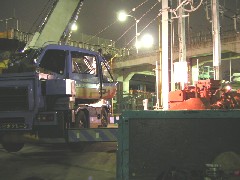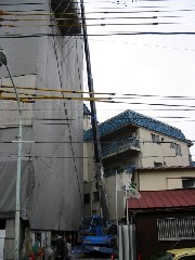 今日はRC現場での搬出作業です。7Fのステージからの搬出です、ステージが真上なので吊り上げて縮めステージの下を回してトラックに積み込みます。今日の分は無事に終了しました。解体屋さん、監督さん、1日お疲れ様でした。
