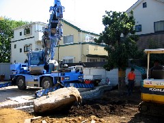 今日は造園屋さんの仕事で庭石と植木の据付、植え込みの作業でした。庭石が重く慎重に作業を行いました。庭石、植木とも無事に据わりました。御施主様も満足されたようです。造園屋さん、1日お疲れ様でした。