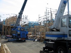 本日は木造構造部材の搬入作業です。小型乗用車がやっとのスペースで荷取り間配り致しました。70坪はある大きい邸宅なので材料はかなりありましたが、あらかじめ梱包材の荷重を決めさせていただいたのでスムーズに運びこむことが出来ました。運送屋さんも小運搬で大変だったと思います。関係者の皆様お疲れ様でした。