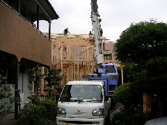 本日は木造建て方です。長手方向に対して縦にクレーンセットになる為、作業半径は最大で24Mでましたが2段ジブで届くことが出来ました。皆さんお疲れ様でした。お施主様上棟おめでとうございます。