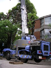 引き続き、くすの木の剪定作業です。都心の真ん中で目通り4Mを越えるとても希少な巨木です。幸い前面道路が袋小路で自由に利用でき助かったのですが引き込み電線が多く注意して剪定枝を下ろしていきました。造園屋さんも総動員でやりでのある仕事をこなしています。山師さんも木が痛まないように慎重に作業しておりました。皆さんお疲れ様でした。明日も宜しくお願い致します。